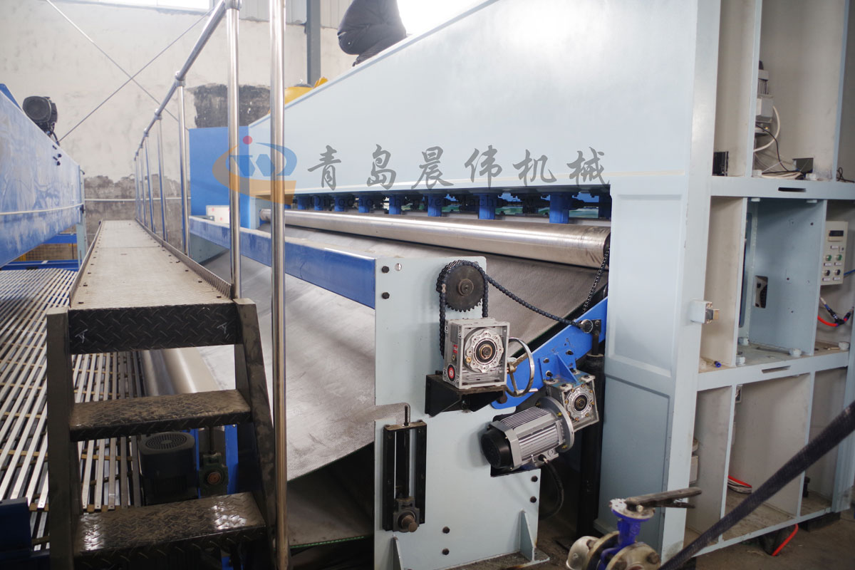 4. CWSL-梳理機(jī):單錫林梳理機(jī)主要是將前道工序棉網(wǎng)層進(jìn)行單纖維狀態(tài)分散過程,并且等寬均勻的輸出到鋪網(wǎng)機(jī),單錫林梳理機(jī)適用于土工布、仿絲棉等無紡布生產(chǎn)線最核心部位。高速高產(chǎn),出網(wǎng)速度高,有效工作機(jī)幅寬,產(chǎn)量高梳理效果好,設(shè)備穩(wěn)定不易故障。